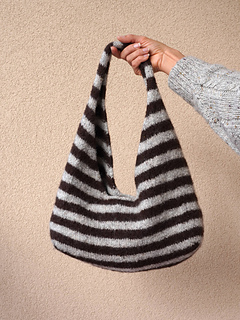 Workflow : The bag is worked from the bottom up. You begin by knitting the base flat, then pick up stitches around the base and work the body of the bag seamlessly in the round. The handles are then worked flat and joined together at the top.