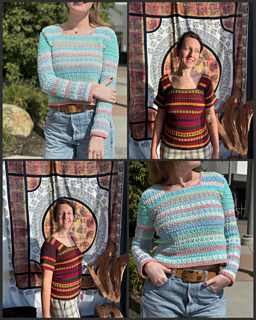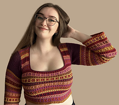 Inspired by the sunset, the Solis top is the perfect Autumn/Winter wearable. The design is intricate whilst also allowing the colours to subtly melt into each other, alike to a sunset. The design is a long sleeved top which can be made either cropped for full length based on personal preference.