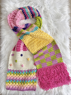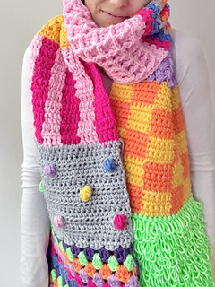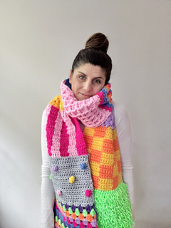A joyful celebration of texture, color, and playful experimentation, the stitchwork scarf is your guide to learning a collection of new stitches all while creating a beautiful project. Designed like a wearable sampler, this scarf brings together a variety of stitches, techniques, and colorwork into one cohesive — and delightfully bold—accessory. Each section introduces a new stitch, complete with full tutorials to ensure your success in building each block! Whether you see it as a learning project, a stash-buster, or a statement piece, this scarf is meant to spark curiosity, creativity, and a love of stitch exploration.