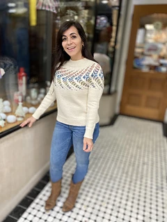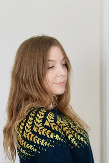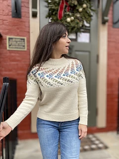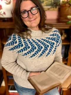 Every sweater holds memories and tells a story. I can look at a finished piece and remember what was happening while knitting it. Some projects hold happy memories, others might remind me of more challenging periods in my life while also reminding me of my perseverance. The Storyteller is a top-down, seamless yoke sweater that begins with two neckline options: crew, or slightly more open. DK or worsted weight yarn make for quick knitting and this fun colorwork yoke is hard to put down! Choose a solid color for your colorwork, multicolored yarn, or create your own gradient with colors in your stash.