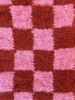 This pattern requires about 120 yds bulky-weight yarn in your main color of choice and another 50-ish yds in a contrasting color (for the checks). You’ll also need size 10 connected needles or DPNs.