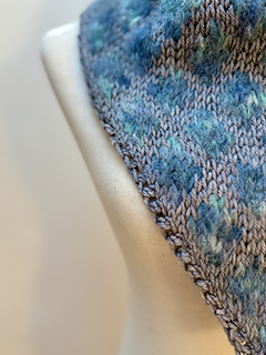 The pattern is specifically designed to make the most of fluffy, luxury fibers! The sample is worked up using a combination of DK weight yarn and Suri Alpaca Fluff, which creates the signature puffy diamond texture.