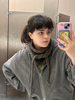 Initially this wasn’t a pattern I was going to write up, but I made it once…twice…three times, then my mum made one, and honestly it’s just kind of really fun to knit and wear so The Thing is now released into the world. Please enjoy. The curl of the stockinette edge makes it really easy to tie and style in front and wear under a bulky coat or over a sweatshirt.