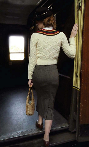 The title of ‘jumper’ seemed to prevail generally for knitted garments in the 1930s and 1940s, and this jacket is one of the earliest to be featured in a needlework magazine. Based on original Tyrolean style, the caption in Needlewoman magazine of February 1937 proudly states: