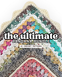 The Bandana Bundle is geared for crocheters of all levels. It features slip stitches, single crochets, double crochets, treble crochets, and half double crochets. This is written in US terms.