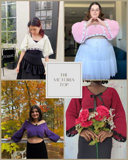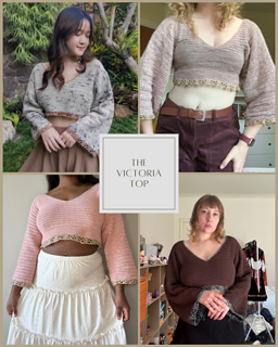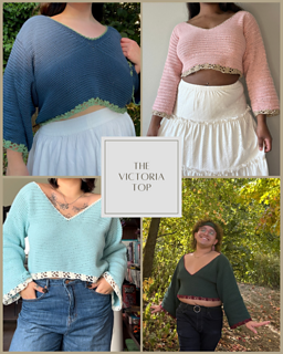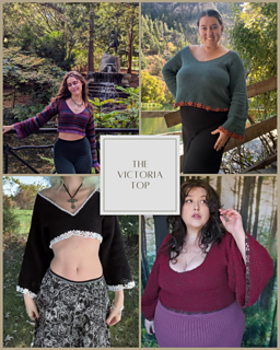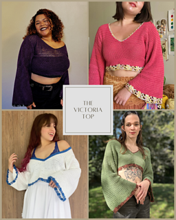 The Victoria Top is a made to measure pattern that is the perfect addition for a fall or spring wardrobe! This flowy top with a V neck, big bell sleeves, and luxurious floral trim works up quickly as results in a lovely, versatile piece! This is a written pattern, but it includes two video tutorials embedded in the text! One for how to complete a hdc foundation chain, as well as visual aid for working up the floral lace trim.