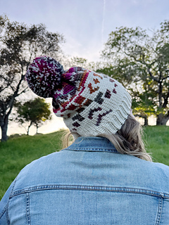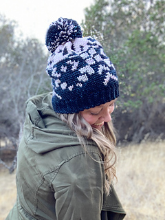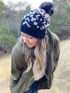The Vieno Hat crochet pattern combines classic stranded colorwork crochet with a modern snowflake motif for a fun, contemporary look. Worked using two colors of worsted to bulky weight yarn combined with simple crochet stitches lets the design really pop. The hat is worked from the brim up and is finished with a full pom-pom for cozy, wearable style.