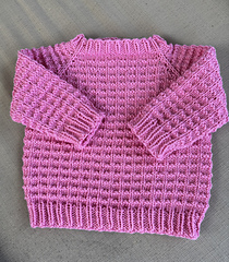 The Vinterland is a baby / toddler / young child’s pullover that’s knitted top down. At the underarms stitches are placed on holders for the sleeves, then the body is continued in one piece. The sleeves are then worked top down too and are seamless.