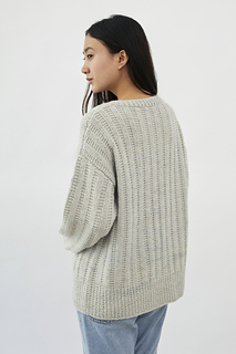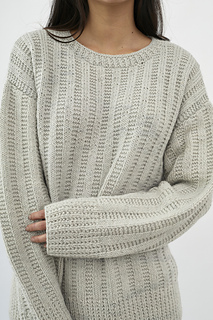 The body is worked seamlessly from the bottom up, starting with a deep seed rib band and then continuing in 3x3 garter rib. After dividing for the armholes, work straight up to the shoulders without shaping. The shoulder stitches are bound off in steps to create a stable seam when the edges are sewn together. The sleeves begin with the same seed rib as the body and then continue in 3x3 garter rib to the top.
