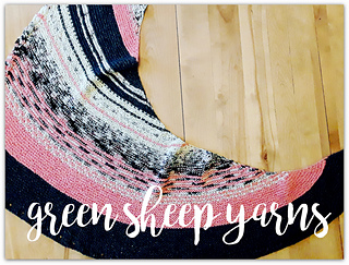 Cable edged shawl. Shawl is knitted mostly in garter stitch, with some colorwork throughout, and mosaic.