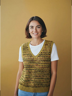 The tank top is perfect for spring or autumn. Layer it over long or short-sleeved tees or a blouse. Choose a multi-coloured contrasting yarn for a jazzy look, or a plain one for a different effect.