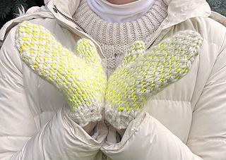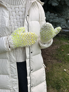 Yardage: MITTS: MC: Approximately 45 yards CC: Approximately 30 yards MITTENS: MC: Approximately 54 yards CC: Approximately 38 yards