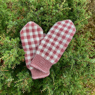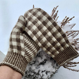 Mittens knitted in a bardot pattern that become very warm and comfortable with the pattern knitting.