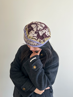 This is a one-size-fits-all pattern, knit bottom up in the round using stranded technique. The tam fits a head circumference of 24 inches/61 cm and is 4 inches/10 cm tall. The crown is 10 inches/26cm across.