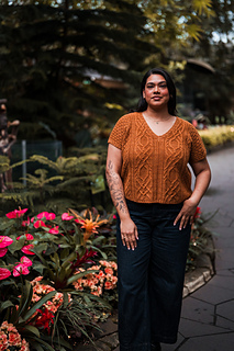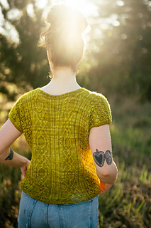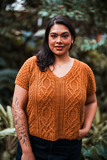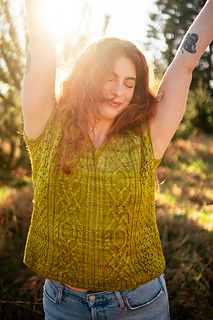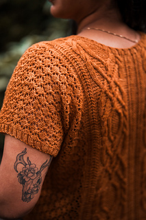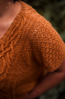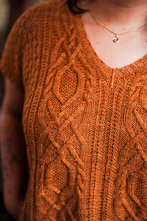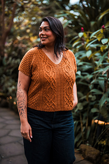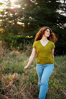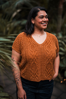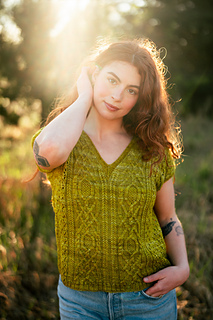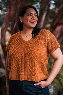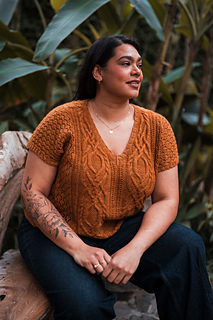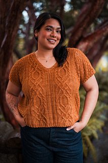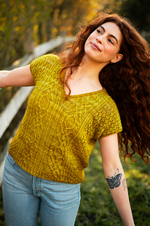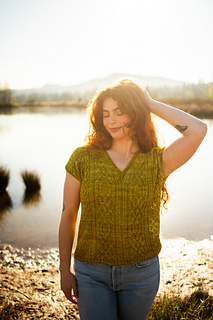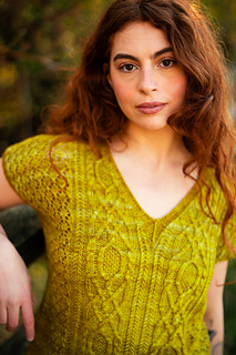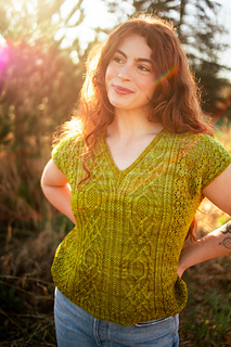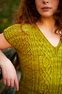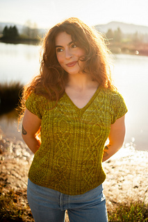 Seamless, top-down, with the same cables, lace, and rich textured stitch work you fell in love with, now in a v-neck tee designed for late spring through early fall. Style it up or down, either way you’ll wear it May through November.