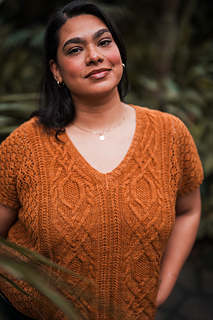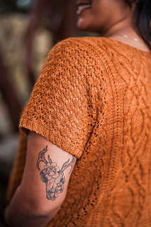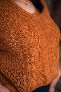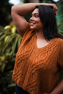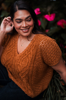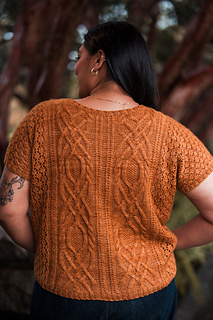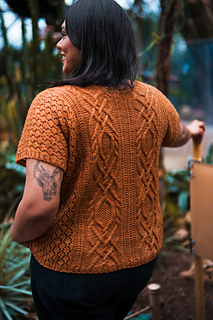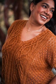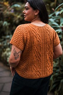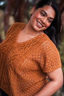 Customize the length and ease to make it your own, choose less for a slimmer fit or more so it’s loose and breezy. Bonus points for the built-in air conditioning: lace sides that let you breathe, with stunning cables and texture running front and back so you can show off your knitting prowess from every angle.