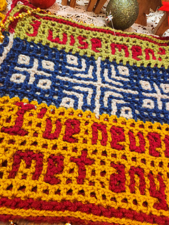 I decided (very last minute) to put together an interlocking crochet Christmas blanket full of the kind of holiday cheer your conservative Christian parents definitely won’t approve of.
