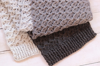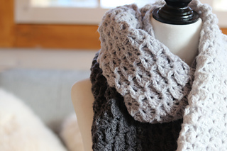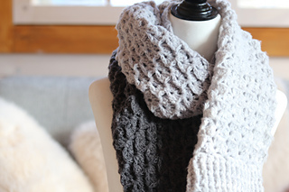 The crochet scarf is easy and fairly quick to work up. It’s so soft, with a cozy plush texture.