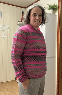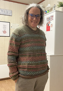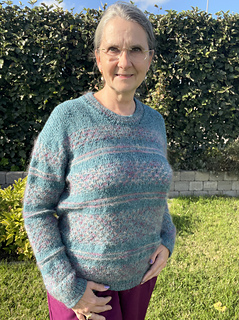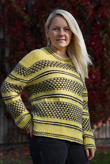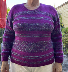 Construction notes: The sweater is worked seamlessly from the top down. It starts by casting on stitches for the back neckline and shaping the shoulders using lifted increases.