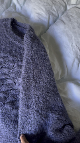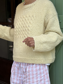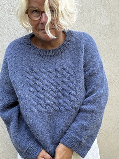 The pullover is worked seamlessly top-down starting with the back yoke. Afterwards, stitches for the front shoulders are picked up and joined after the front neck shaping. The Back and Front are joined at the bottom of the armhole and the lower body is worked in the round. For the Sleeves, stitches are picked up at the armhole. German short rows are used to form the sleeve cap until the underarm before the sleeves are finished in the round.