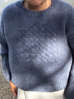 The Tidelace Pullover is a gentle sweater inspired by soft traces left in the sand. Its front features a panel of flowing lace cables, echoing ripples shaped by the tide. The fit is relaxed, with dropped shoulders and a cozy silhouette.