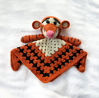 This beautiful PDF crochet pattern in the shape of a tiger lovey consists of 10 pages and includes more than 25 colorful photos with detailed step-by-step instructions.