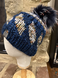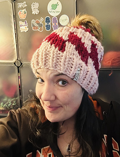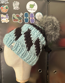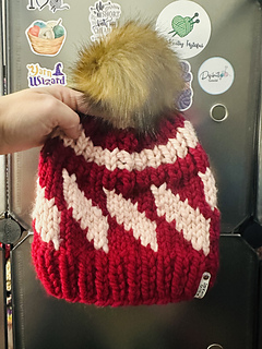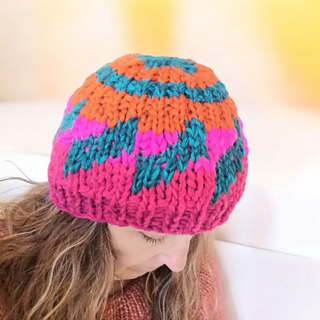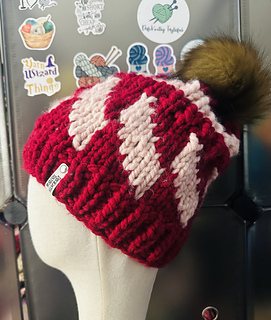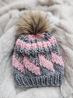 Add a fun twist to your wardrobe with this Tilt-A-Whirl beanie pattern! Knit in super bulky weight yarn, this stylish accessory features a captivating design in two colors. Perfect for staying cozy and chic during the colder months. Get your knit on now!