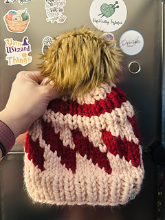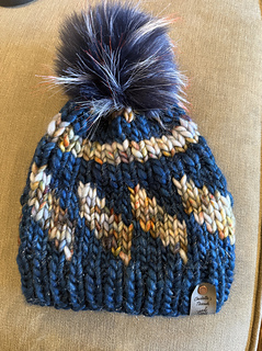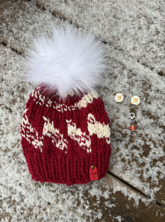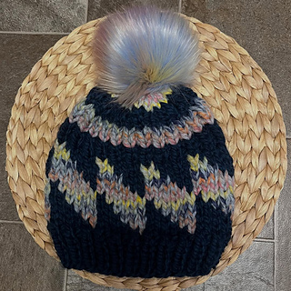 This beanie pattern is knit in the round from the bottom up. It has a ribbed pattern with colorwork in between. This is a super bulky beanie pattern and great to use up scraps! You can use any colors your heart desires. It is named after the Tilt a Whirl amusement ride.