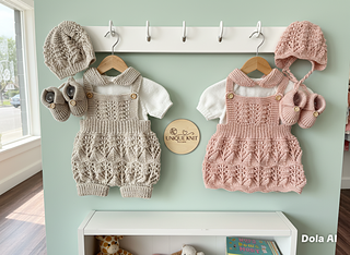 “Tim & Kim” A knitting pattern for a 4 piece Dungaree and Dress set with a simple textured stitch.