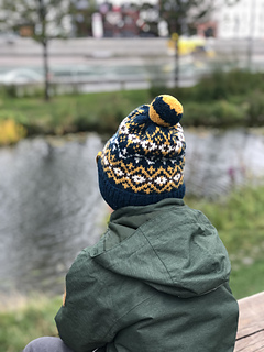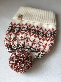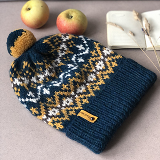 Использование пряжи с содержанием альпака, а также выполнение двойного отворота резинки и жаккардового узора дает эффект двойного полотна, что делает шапку более теплой и не продуваемой.