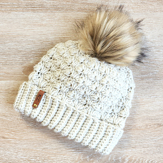 The Timber Hill Beanie is a cozy hat that’s made for winter fun! The beanie is made with worsted weight yarn in a striped or solid version. The distinctive design is created with cluster stitches and spike stitches. The beanie has a warm double brim and can be topped with a purchased faux fur pompom if desired.