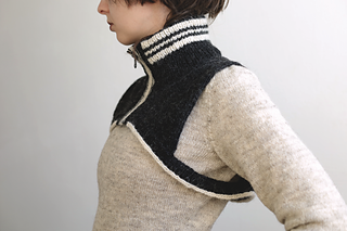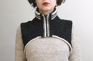 Time Skip Collar is an accessory designed to keep your neck and upper torso warm when you’re out and about on your space-time adventures. It features a high double folded neck, shaped panels for the front and back connected with the ribbing, and a separated zipper in the front.