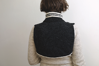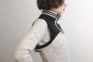 For the most part, the collar can be knit in a fingering yarn held double or a DK/Sport weight yarn on its own. However, the plackets are designed to be knitted in a fingering yarn held single at a tighter gauge. It is done to reduce bulk in the front with the zipper sewn in.