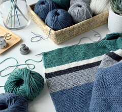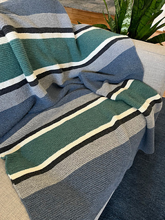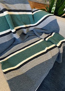 If you are looking for a striped blanket pattern for bulky #5 weight yarn… please see my Here & Now blanket knitting pattern.