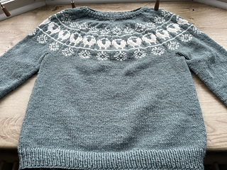 Te body is worked in rounds down to the hem. Sleeves are worked top down to the cuffs last. No finishing required.