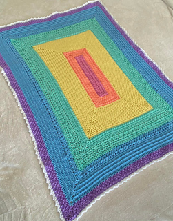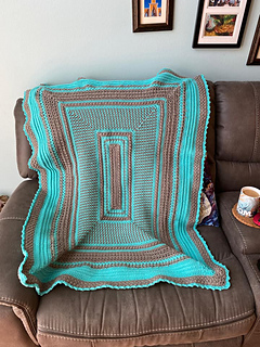 Made from the center out, this unique construction was highly requested by fellow crocheters. It is a fun way to make a blanket and see how it changes after each completed section. You’ll love the process!
