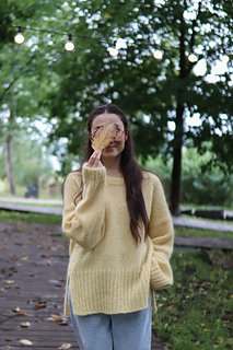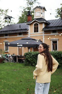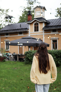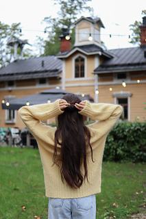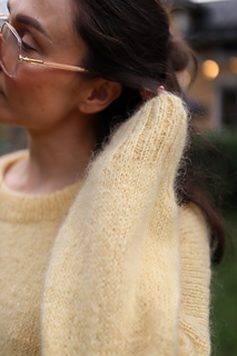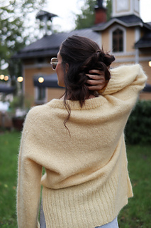 Lanka: 450 (550) 650 (750) g Novita Hehku (125 m / 50 g, 70 % mohair ja 40 % villa, sävy 205) TAI ominaisuuksiltaan ja juoksevuudeltaan vastaavaa lankaa noin 1160 (1365) 1605 (1845) m.