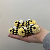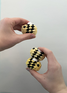 this is a free pattern for a no sew bee. mine are 2 inches long and took 8 minutes to make. the bee has only 8 rounds and the wings are made with bobble stitches.