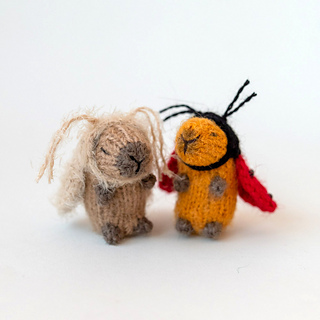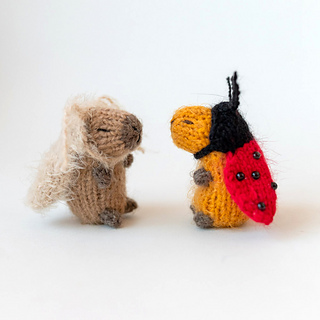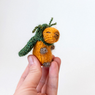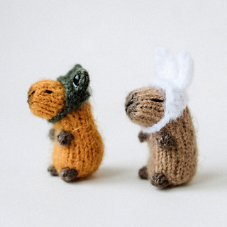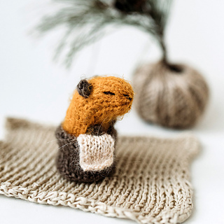 This knitting toy pattern includes instructions for making a tiny capybara approximately 5 cm (1.97 inches) tall.