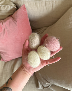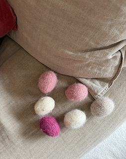 Tiny Easter Eggs come in three sizes and can be hung up for decoration or added to decorate an Easter table. They are worked from the bottom up and are stuffed with wool yarn before felting.