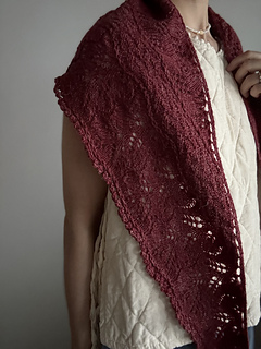 This crescent shawl begins at the center top and yarn overs drastically increase stitches, which gives it a beautiful drape. The pattern has both charted and written instructions.