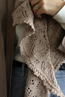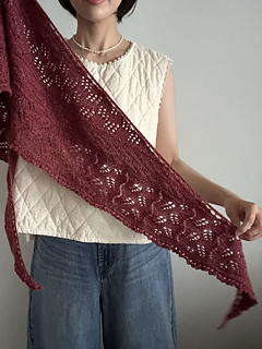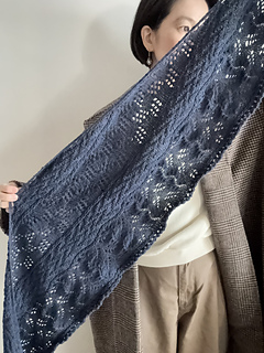 この三日月形のショールは中央上部から編み始め, 掛け目で大胆に目数を増やすことで美しいドレープを生み出します. パターンには, チャートと文章による説明の両方が含まれています.