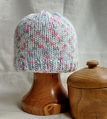 Tiny Join Forces is a multi-weight pattern, written for 5 different tensions corresponding to 4ply/fingering through to 10ply/aran weight yarns. The hat can be made with a single strand of the appropriate weight if preferred. The Tiny Join Forces hat is knitted in the round, brim up. It is written for 7 sizes from small newborn to child (2-8yrs). The child to adult version of this pattern is Join Forces.