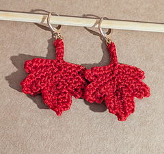 A teeny little maple leaf, which can be made with either fingering weight acrylic yarn or embroidery thread.