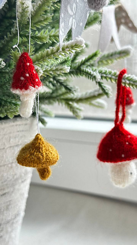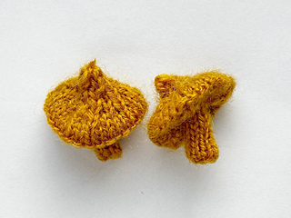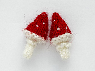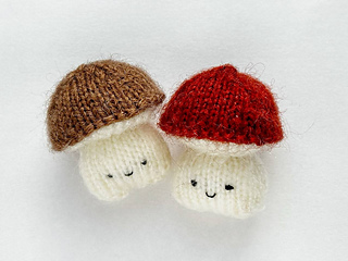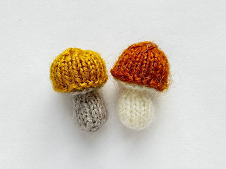 The mushrooms are knitted in one piece in the round on double-pointed needles.