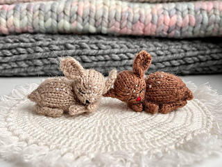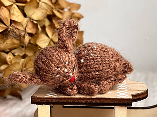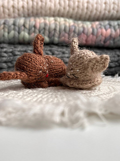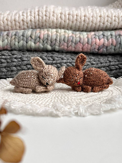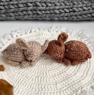This knitting toy pattern includes instructions for making a mini fawn approximately 6 cm (2.3 inches) tall.