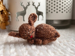 The head and body are knitted in the round using four double-pointed needles. The legs are worked as i-cord. All parts are knitted and assembled according to the instructions.