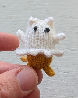 This teeny tiny kitty isn’t so scary, but how quick you are able to finish making it might be! Tiny Spooky Kitty is wearing a ghost costume and is the perfect little thing to make for spooky season. Use your Tiny Spooky Kitty to ward off unused scrap yarn: it doesn’t take much yarn or time to make a whole herd of these cuties! Just in time for spooky season.