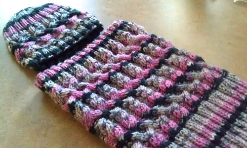 Please note, the hat is knit bottom up and the cocoon is knit top down. Keep this in mind for color changes.