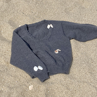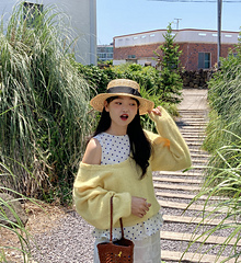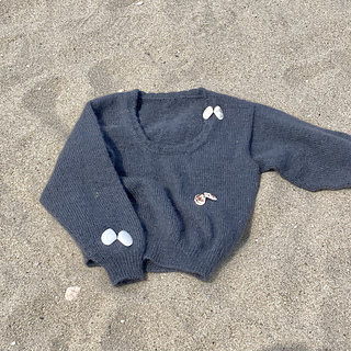 잔물결 스웨터는 드롭숄더 실루엣에 소매경사뜨기를 더해